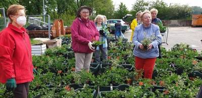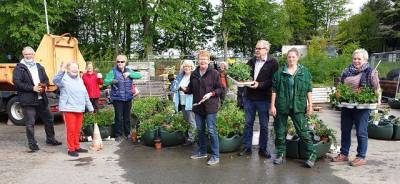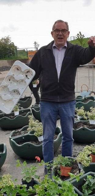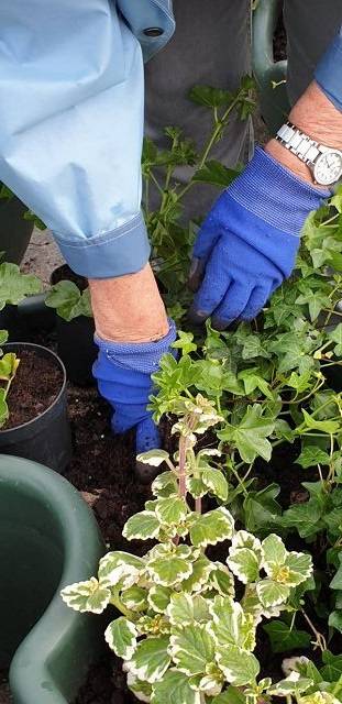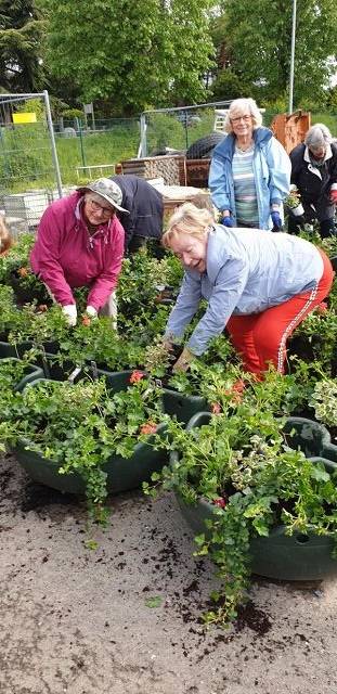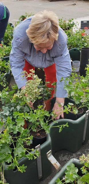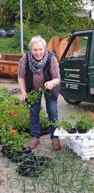FU bepflanzt die Blumenampeln - Fotos von Dagmar